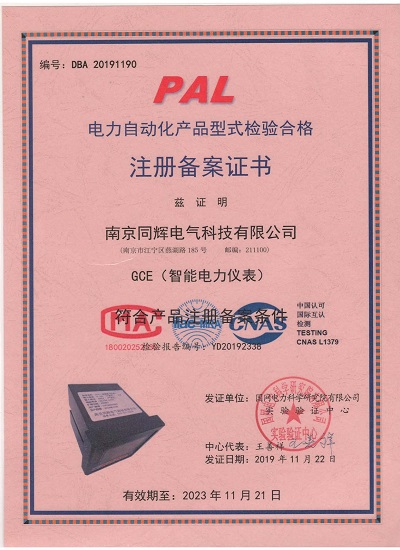 注冊備案證書-電力自動(dòng)化